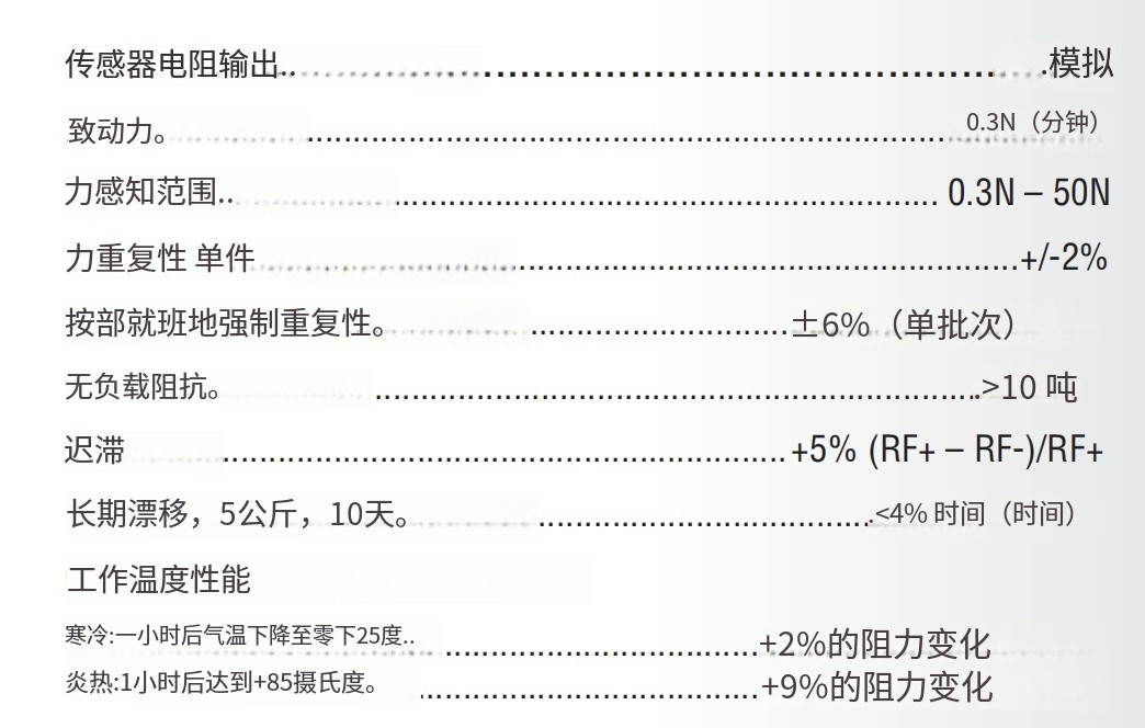 *力感知電阻是堅(jiān)固的聚合物厚膜器件,當(dāng)增加的力施加到傳(PTF)感器表面時(shí),電阻會(huì)下降。